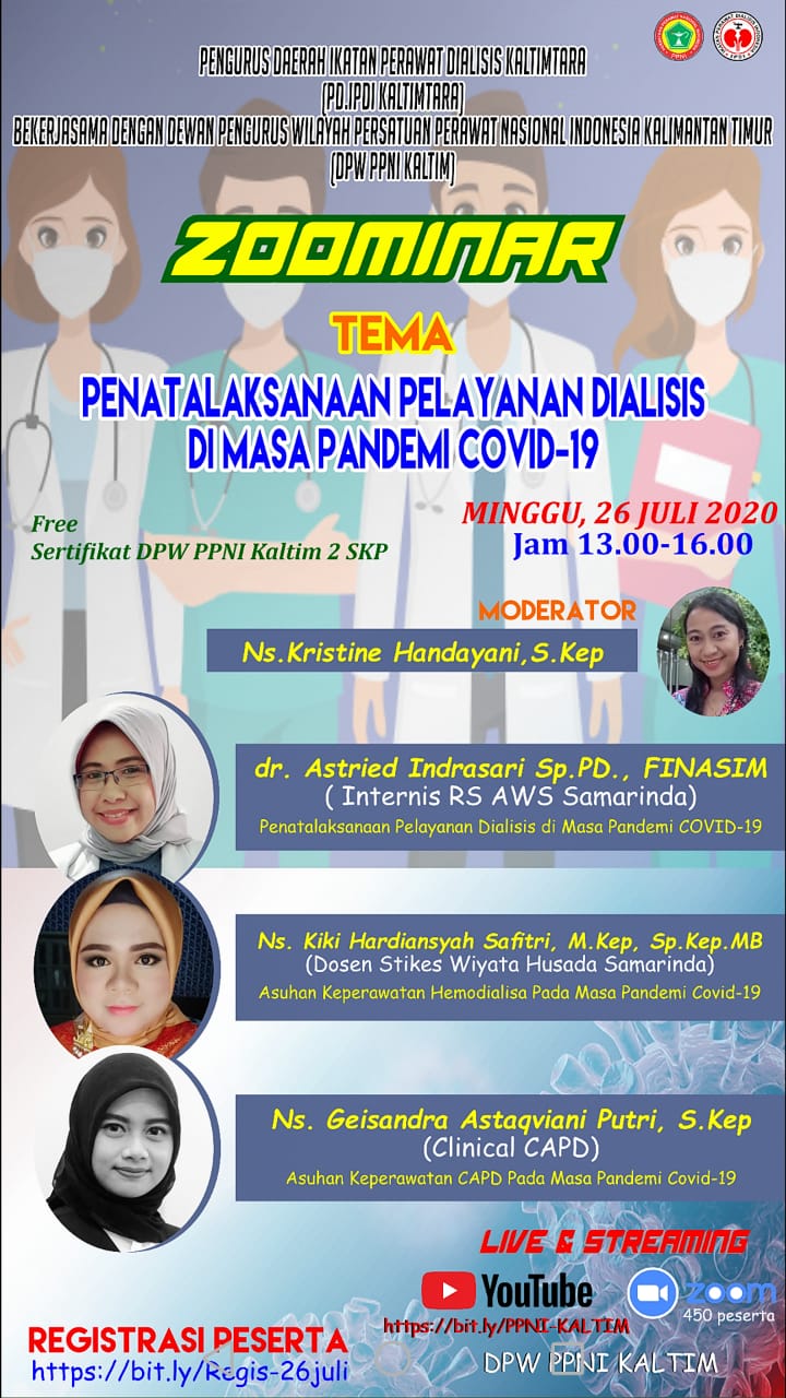 DPW PPNI Kaltim mengadakan webinar bekerjasama dengan Ikatan, Himpunan, DPD dan DPK PPNI Se- Kalimantan Timur. Dengan tujuan agar sejawat di Indonesia, khususnya Kalimantan TImur dapat update ilmu keperawatan.