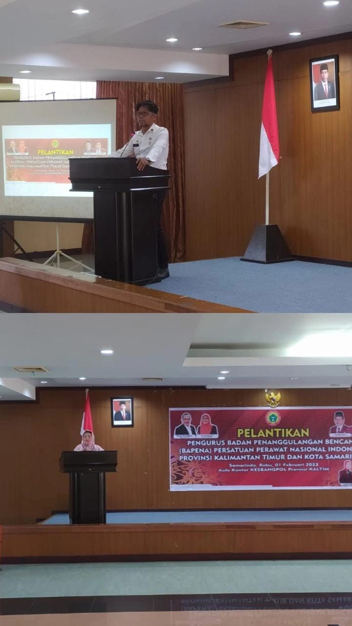 Samarinda, Infokomdpwppnikaltim – Pelantikan Pengurus Badan Penanggulangan Bencana (Bapena) Dewan Pengurus Wilayah (DPW) PPNI Provinsi Kalimantan Timur dan Dewan Perwakilan Daerah (DPD) PPNI Kota Samarinda masa bakti 2023 – 2026 diselenggarakan di Hotel Novotel, Samarinda (Rabu, 01/02/2023).