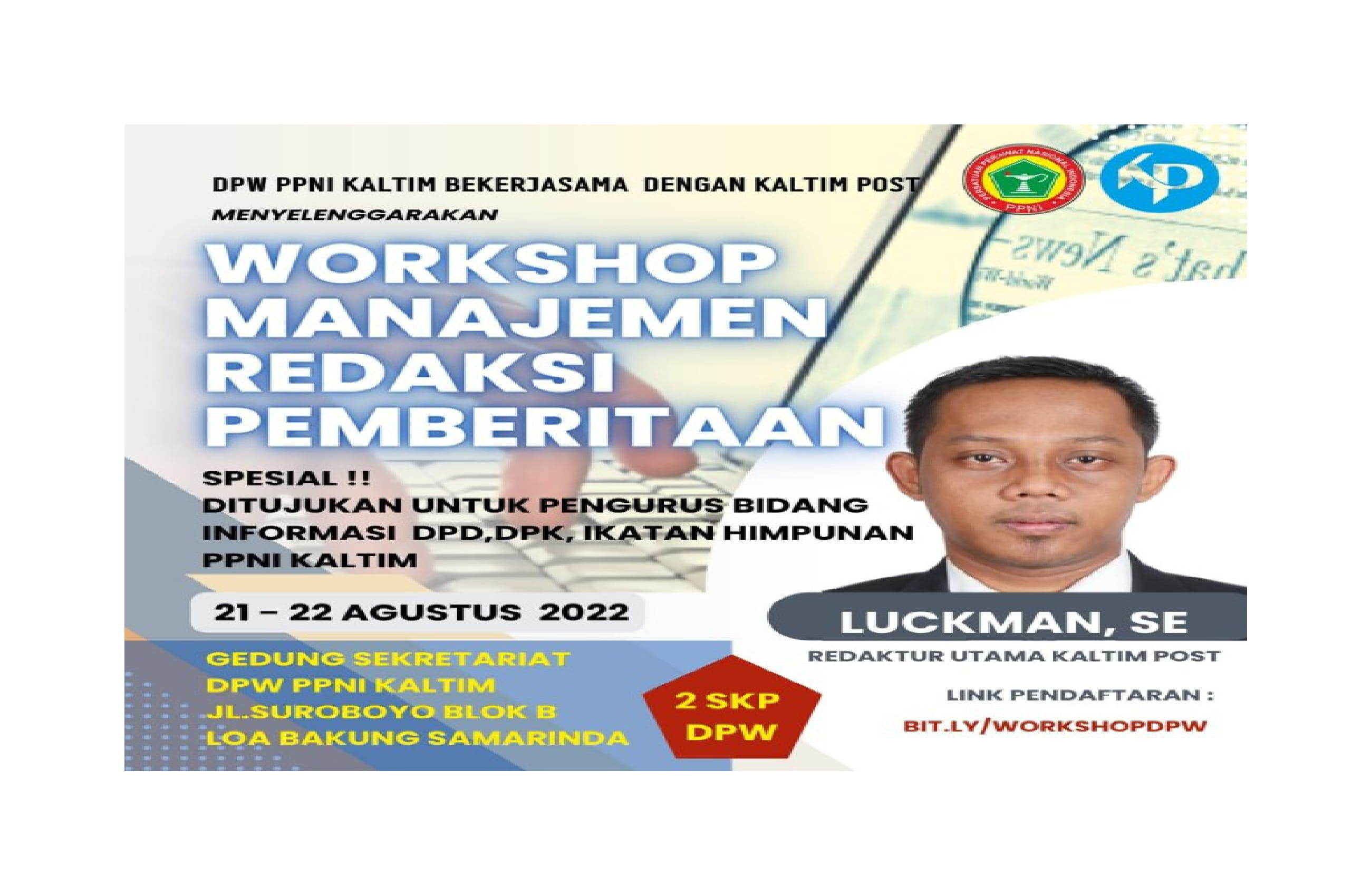 Balikpapan, 21 Agustus 2022, Dewan Pengurus Wilayah PPNI Kalimantan Timur Bidang Penelitian, Sistem Informasi Dan Komunikasi pada tanggal 21-22 Agustus 2022 telah menyelenggarakan “Work Shop Manajemen Redaksi Pemberitaanâ€. Dalam acaranya DPW PPNI KALTIM mengundang 4 DPD, 6 DPK, dan 14 Perhimpunan dibawah naungannya. Sambutan Ketua DPW PPNI KALTIM Ismansyah, S.Kep.,M.Kep menyampaikan “ kegiatan tersebut bertujuan sebagai upaya untuk meningkatkan Sumber Daya Manusia pengurus DPD